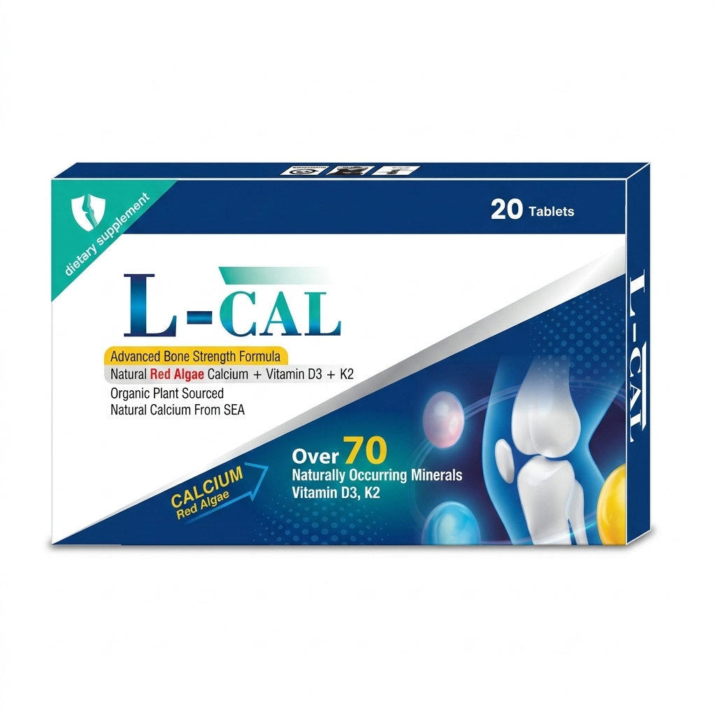 L-CAL is an advanced bone support formula combining Red Algae Calcium, Vitamin D3, and Vitamin K2 to enhance calcium absorption and promote stronger bones.